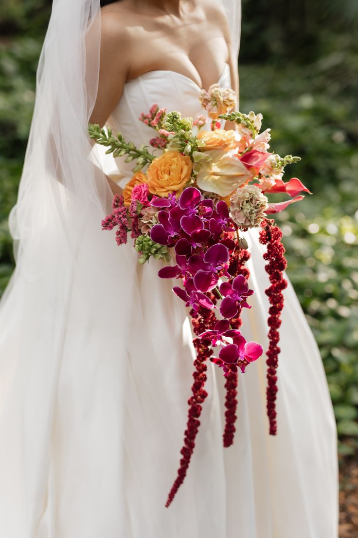 For brides who want their bouquet to make a bold visual statement, XXL bouquets and cascading designs—where flowers fall gracefully—are on the rise: