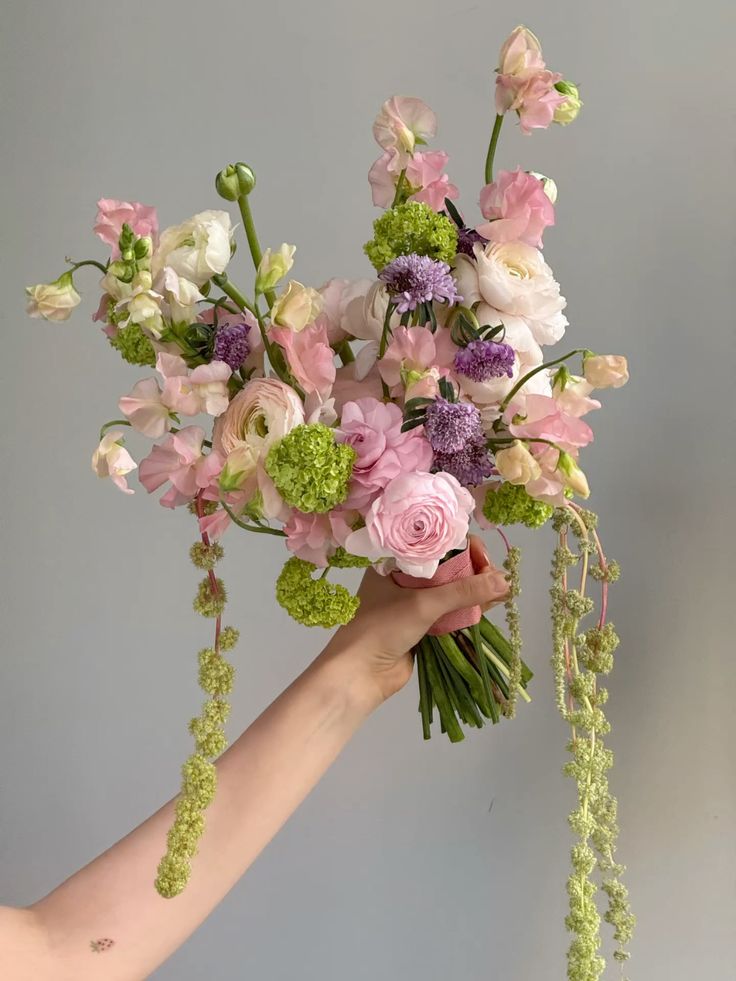 Bouquets that break away from traditional symmetry continue to be a strong trend. The deconstructed aesthetic conveys movement, freedom, and natural beauty, with flowers placed in irregular directions and a mix of textures.