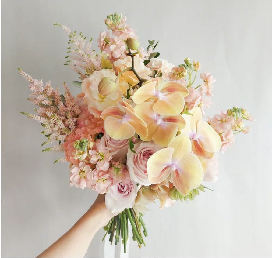 While trends allow for bold experimentation, we will also see the return of monochromatic bouquets with a modern twist. Instead of simply white or pink, tones such as the following will stand out: