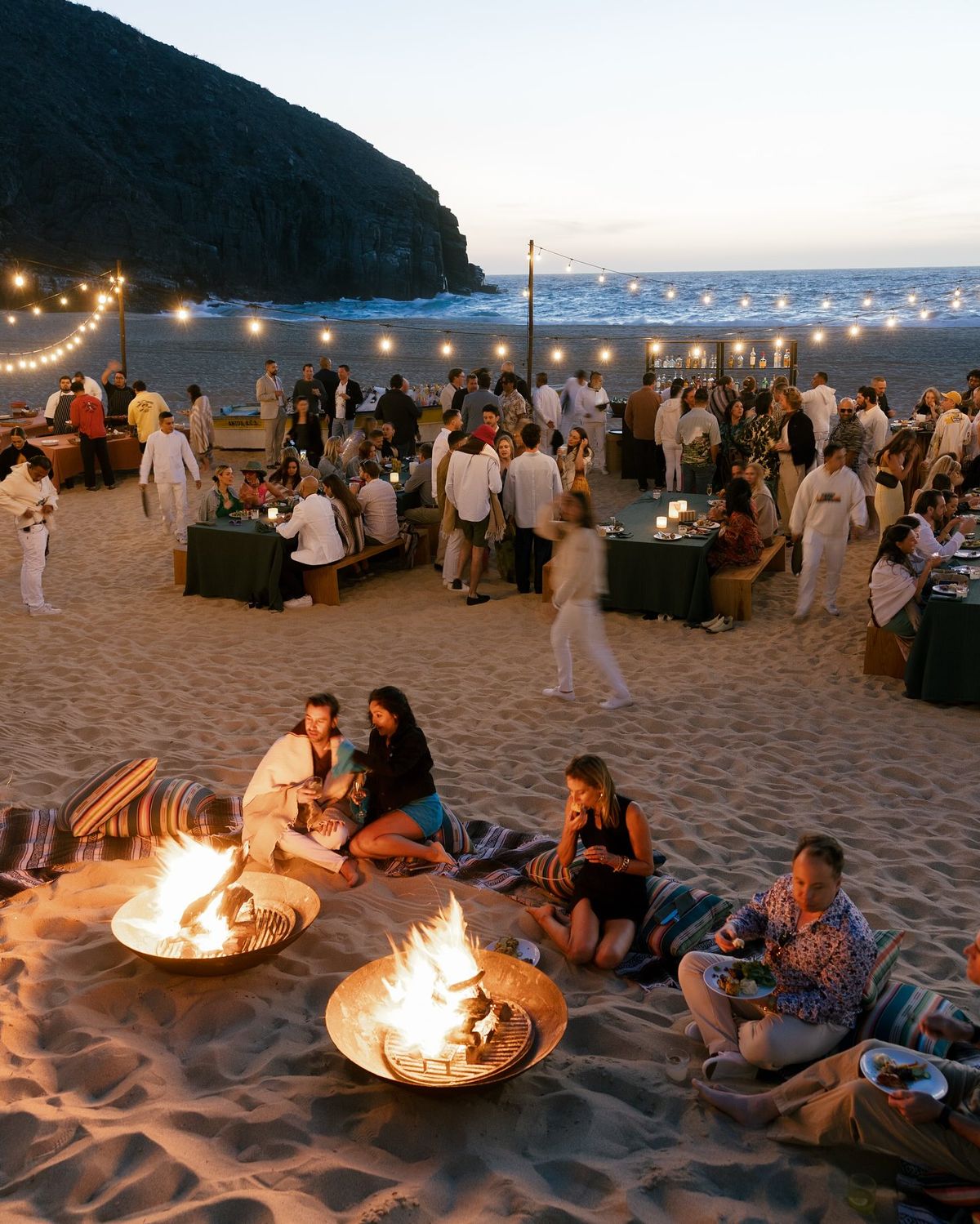 Imagine your guests barefoot in the sand, gathered around a bonfire, with warm lighting and soft music.